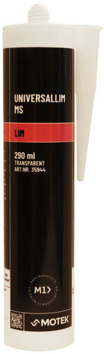 - Transparent universalt monteringslim og fugemasse (maks 4 mm bredde) som herder til en permanent elastisk masse