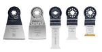- Dette settet består av 5 forskjellige blader for saging av ulike materialer som tre, komposittmaterialer, plastmaterialer, jernholdige metaller og slipende materialer samt fjerning av gjenstridige overflatelag.