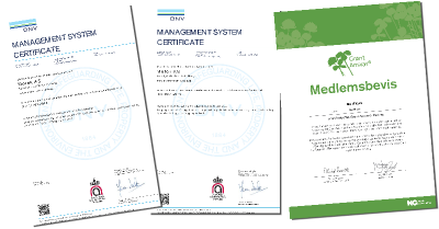 Det er «Det Norske Veritas (DNV)» som har sertifisert oss og er ansvarlig for å gjennomføre en grundig revisjonsprosess, hvert tredje år. I tillegg til dette utføres det interne revisjoner både på hovedkontoret og i butikkene.