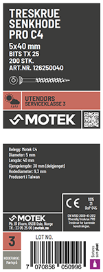 I 2024 lanserte vi ny emballasje på alle produktene under Moteks merkevare. Det betyr at det blir ny emballasje på alle produktene vi produserer selv - som skruer, spiker og kjemi.