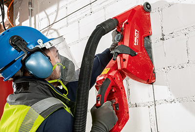 Hiltis verktøy og tilbehør er designet som integrerte støvfjerningssystemer (DRS) for å maksimere mengden skadelig støv som fjernes og samle det effektivt med høyytelsesstøvsugere.