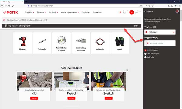 Kunde- og prosjektvelgeren er flyttet på, gjort tydeligere og enklere å bruke. Nå har du den med deg i toppen av siden mens du handler slik at du har full kontroll på hvilket prosjekt du handler på.