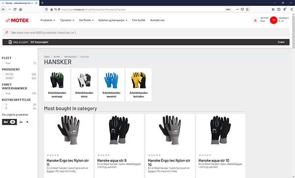 På bildeeksempelet kan du se at kategorien «Hansker» deles opp i blant annet vinterhansker og vanntette arbeidshansker i tillegg.