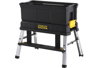 Når du har behov for å komme deg høyere opp, tar du av lokket, bretter ut beina og du er klar til å jobbe. Dersom du vil ha verktøyene dine litt høyere kan du også feste verktøykassa oppå krakken så den står stabilt mens du jobber. Det er god HMS.