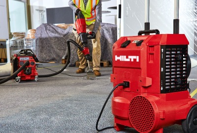 Støv er helseskadelig, derfor er det viktig at du tar grep for å redusere mengden støv som får fly fritt rundt. Det første steget er å koble verktøyet til en støvsuger. Hilti har mange støvsugere som lett kan kobles til verktøyet for nær støvfritt arbeid. Selv om støvsugerne gjør en kjempegod jobb, vil de fleste byggeplasser være tjent med å sette i gang Hilti Air Cleaner i tillegg. Mens støvsugeren suger opp støvet, så reduserer Hilti Air Cleaner svevestøvet.