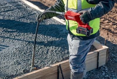 Nyfylt betong inneholder lommer med innelukket luft som må fjernes umiddelbart, ellers vil de føre til svekkelse av betongen. Derfor er det viktig å ha en betongvibrator klar til bruk når betongen støpes. Hiltis batteridrevne betongvibrasjonsverktøy hjelper deg med å oppnå betongstøping av høy kvalitet hver eneste gang. Og du slipper bryderi eller driftsstans som kan oppstå med verktøy som bruker strøm eller drivstoff.