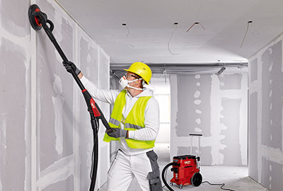 Med overlegen ergonomi og støvkontroll er Hiltis nye veggsliper DWS 225 det perfekte verktøyet for overflatesliping av gipstak og -vegger.