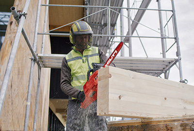 Denne motorsagen er laget for både presisjonsarbeid og krevende oppgaver. Den håndterer alt fra kapp av trebjelker og konstruksjonstre til rivningsarbeid og stolpekapping. Den kan kappe massivtre opptil 36 cm i tykkelse og kan også brukes til beskjæring og kutting av små trær.