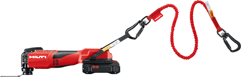 Verktøyet vibrerer nesten ikke takket være aktiv vibrasjonsreduksjon (AVR). Fester du på en sikkerhetsreim, unngår du å miste verktøyet i bakken eller fra høyder hvis du jobber på stillas eller i stige.