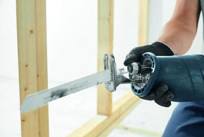Sagbladet på bajonettsaga kan roteres 180° for å kunne kutte mot tak, vegger og gulv. Dersom du skal kutte helt inntil anbefaler vi at du bruker et fleksibelt sagblad.