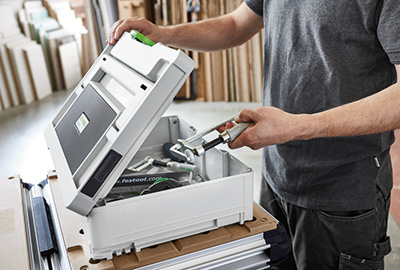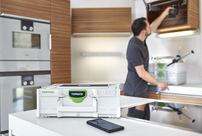 - TOPROCK Bluetooth®-høyttaler er fullt kompatibel med alle Systainergenerasjoner, støvsugere og mange andre Festool systemtilbehør.