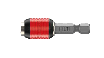 Bitsholderen gjør det enkelt å skifte bits, da nye bitser kan klikkes inn med én hånd. Den passer med alle skrubits med 1/4“ tilkoblingsende, og har en perfekt systemtilpasning med Hilti skrumaskiner og Hilti slag- eller torsjonsbits. Den er spesielt egnet når du ofte bytter mellom forskjellige utsparinger, som Torx, Philipps, Square, Hexagon, Poz.