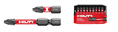 IF system skrumaskinbits er egnet for bruk med Hilti gipsskrumaskiner og Hilti skruemagasiner, og passer perfekt til alle Phillips 2 (PH2) skruehoder. Bitsene bidrar til rask montering av gipsplater ved bruk av Hilti skrumagasiner, selv med bare én hånd for takskruing.