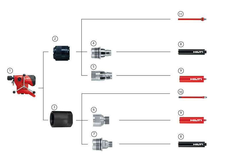Med mye forskjellig tilbehør og forbruk til hvert verktøy, kan det være tidkrevende å finne ut nøyaktig hva du har behov for. Her ser du en oversikt over hvilket tilbehør som kan brukes til kjernebormaskinen Hilti DD 120 W.