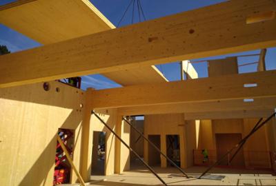 Se video fra byggeprosjekt i massivtre