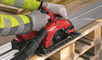 Også Hilti tilbyr styreskinner til sine sirkelsager og dykksager. Denne er 1400 cm lang og kommer i enten sett versjon med praktisk bag, to 1400 cm skinner, koblingsstykke og tvinger.