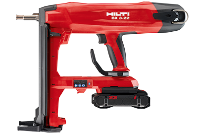 BX 3 ME-22 brukes til feste av elektro- og rørfester mot betong og stål, samt feste av stålsviller til gipsvegg mot stål og betong. Boltepistolen har tre anleggspunkter for 90° skyting. Grunnet sin smarte fjærmekanisme har den ekstremt lav rekyl, noe som er bra for brukeren sin helse. BX 3 ME har også lavt lydnivå og er ekstremt rask å jobbe med. Den klarer faktisk 1 spiker i sekundet! Siden denne boltepistolen ikke går på verken gass eller krutt så er det ingen krav til sikkerhetsdatablad (SDS) eller rensing av maskinen. BX 3 ME har serviceindikator som sier ifra når det er på tide å levere den inn til service. Maksimal lengde på spiker er 36 mm.