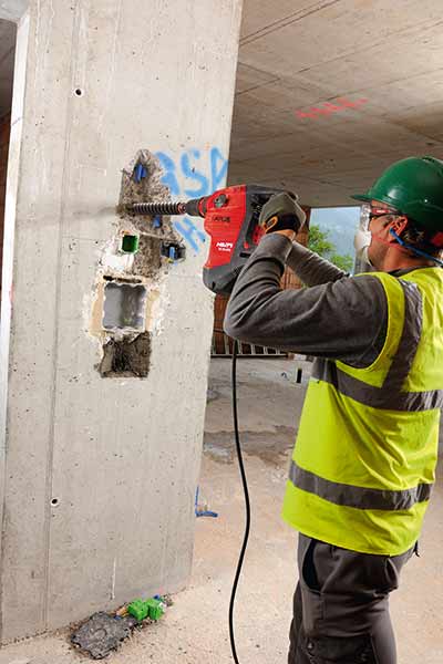 Slagboring i betong, mur og naturstein med bor 12 - 150 mm i diameter. Bore hull for tunge ankre fra 20-40 mm i diameter. Meisling og riving med spisse og flate meisler. Boring med høyt dreiemoment i tre og stål.